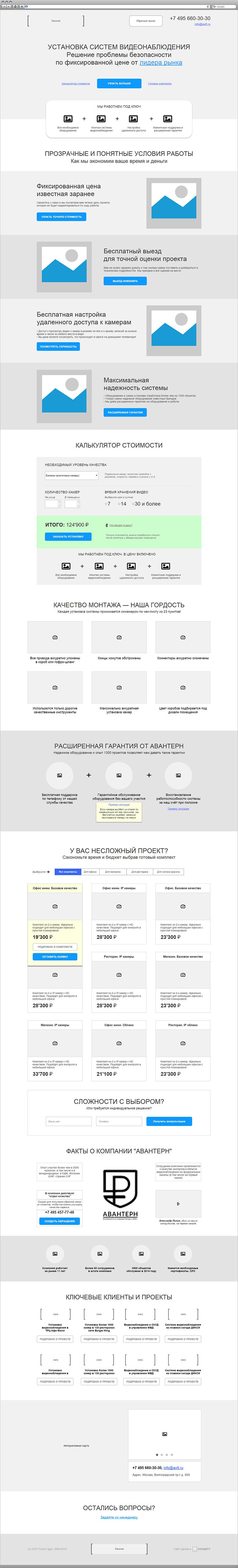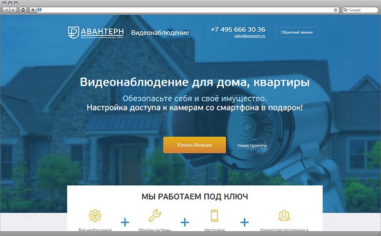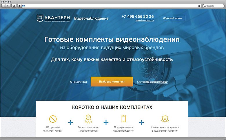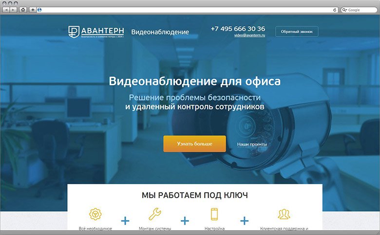 Для начала работы над новым сайтом проводим 6-ти часовую встречу в офисе АВАНТЕРН. По результатам встречи готовим список из 15-ти сильных сторон клиента в области видеонаблюдения и детально прорабатываем концепцию будущего сайта.