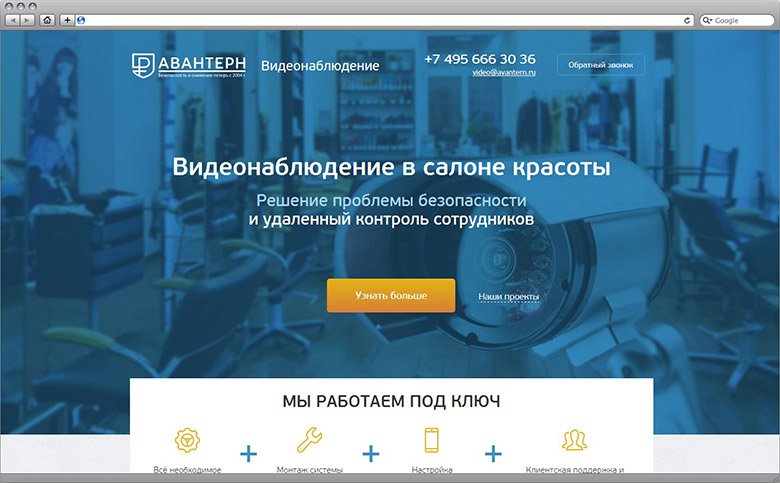 Выясняем, что аудитория сайта достаточно хорошо сегментирована по типам объектов, куда им надо поставить видеонаблюдение. Проводим дополнительные исследования и понимаем, что основные единицы спроса — это видеонаблюдение в офисах, домах, магазинах, ресторанах, салонах красоты. Добавляем на сайт технологию «мультилендинг», чтобы сайт подстраивался под запросы целевой аудитории.