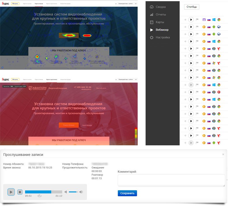 Готовим и запускаем рекламную кампанию и… с ужасом понимаем, что конверсия сайта достаточно низкая — примерно такая же, как была на старом сайте. Заказчик переживает, но мы не сдаёмся. Изучаем карту кликов, карту скроллинга, отсматриваем видеозаписи ~500 посещений сайта, прослушиваем все поступившие звонки.