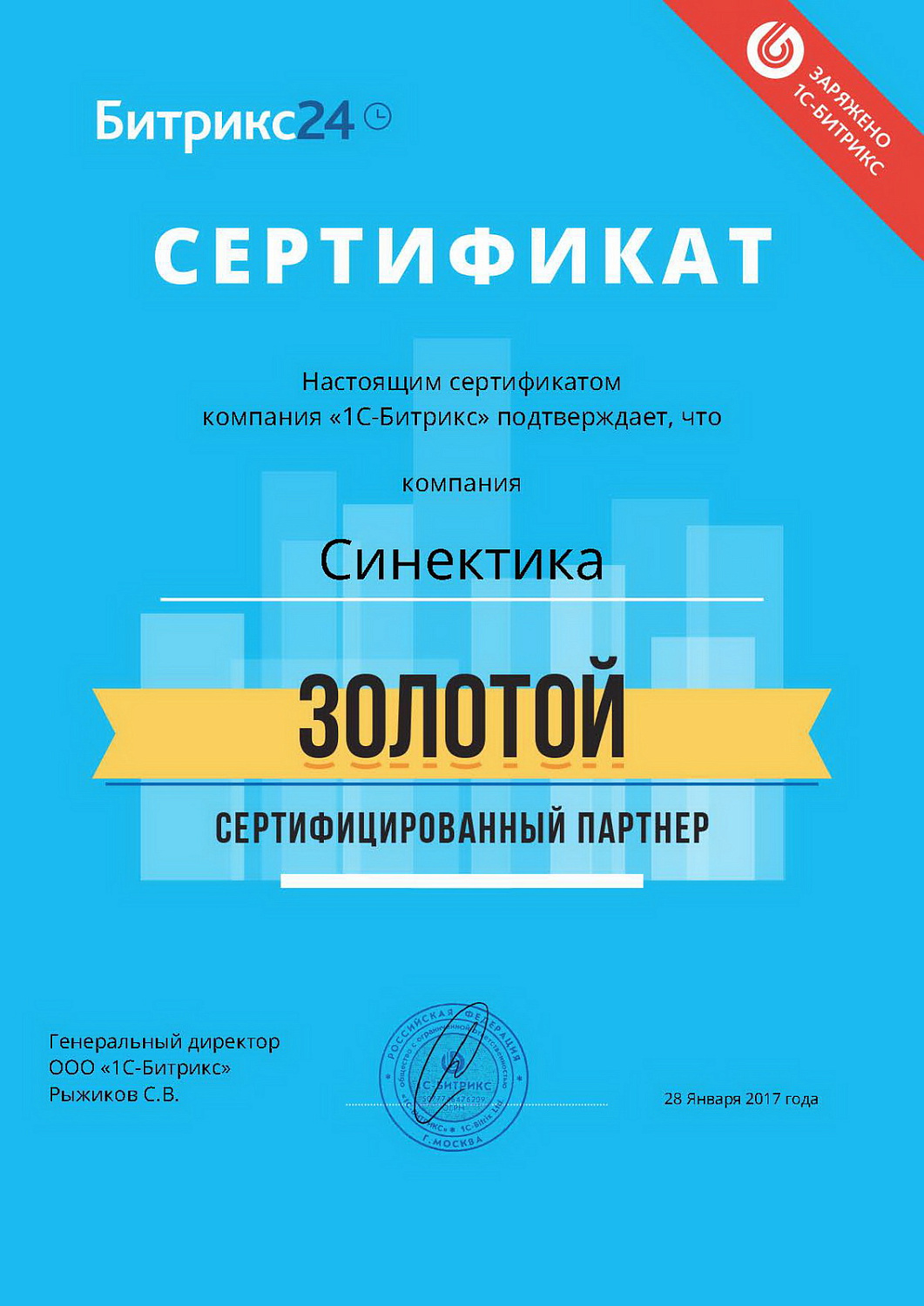 Мы — золотой сертифицированный партнёр компании «1С-Битрикс»